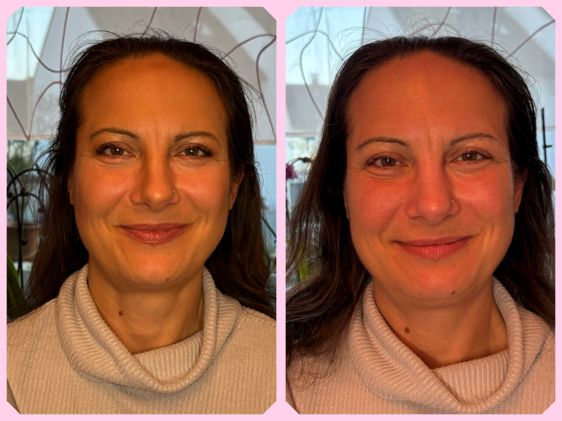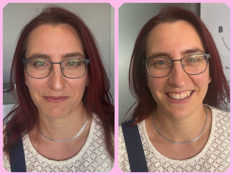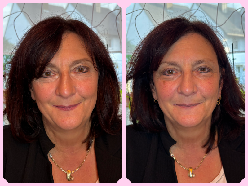Hier siehst du echte Vorher-Nachher-Bilder meiner Kundinnen – ungeschönt und unverfälscht. Die Fotos für die Vorher-Nachher Collagen wurden alle mit meiner Handykamera aufgenommen, ohne professionelle Beleuchtung oder Nachbearbeitung. Ich bin keine Fotografin, sondern Make-up-Coach und Visagistin – und mein Ziel ist es, dich strahlen zu lassen, nicht perfekte Studioaufnahmen zu machen.